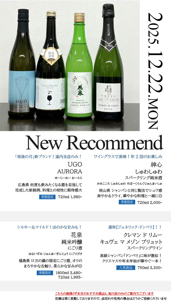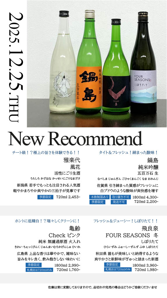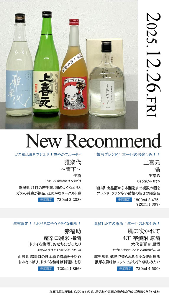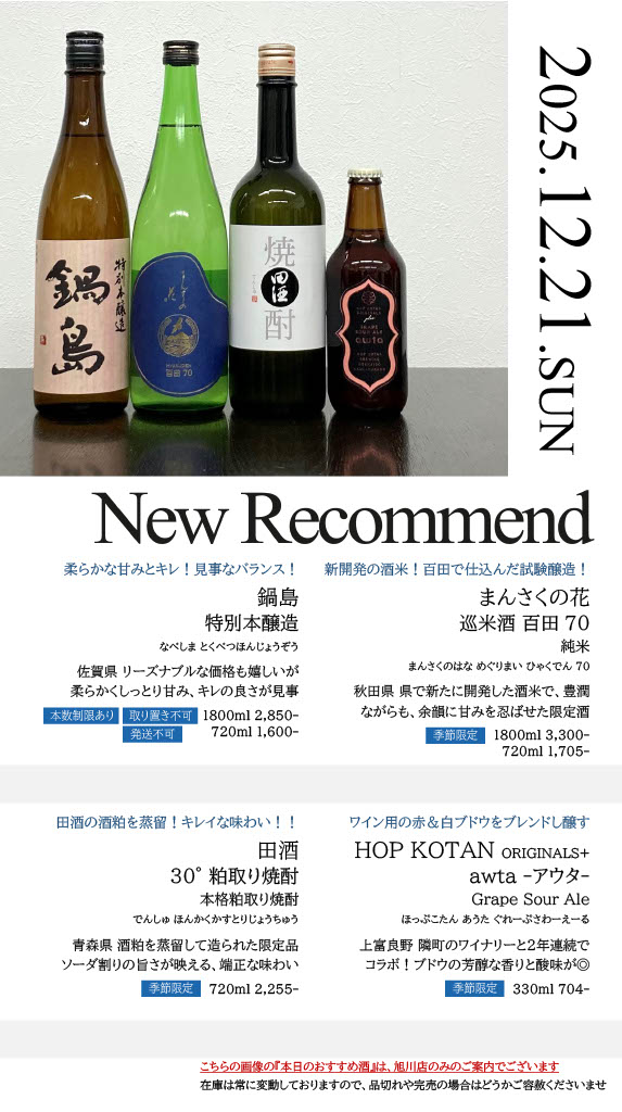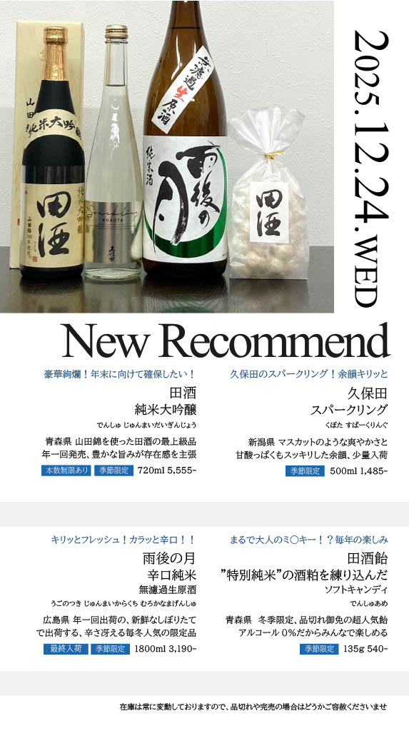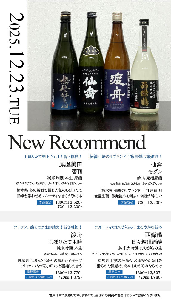 公式サイトの【入荷情報】【おすすめ酒】の更新はこれで最後となりますが、公式Instagramでは毎日更新が続いておりますので、気になる情報はそちらを参考にしてみてください