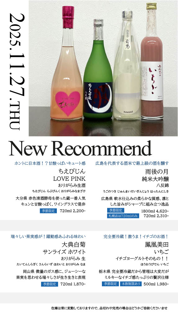 お酒のラインナップに是非、当店のお酒をご活用ください^^