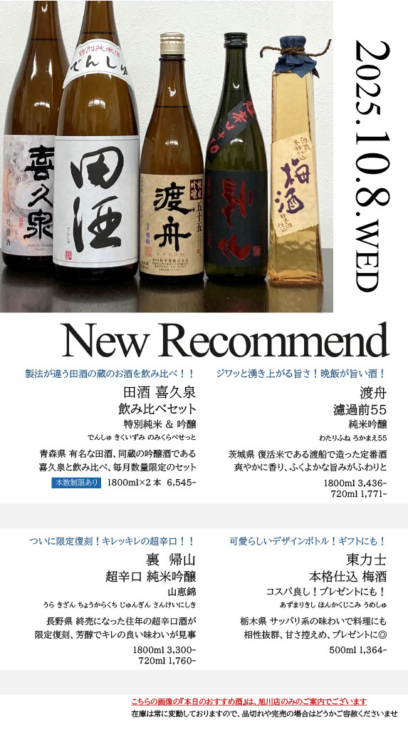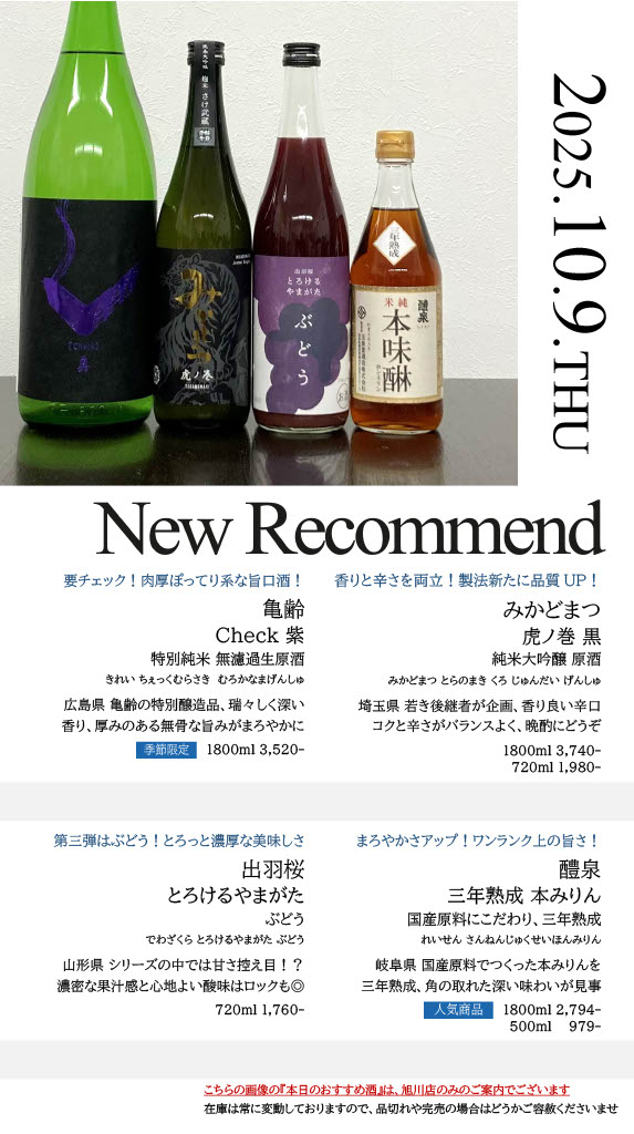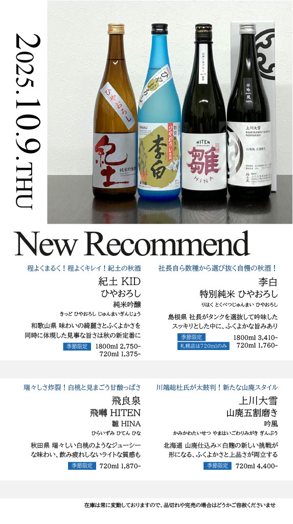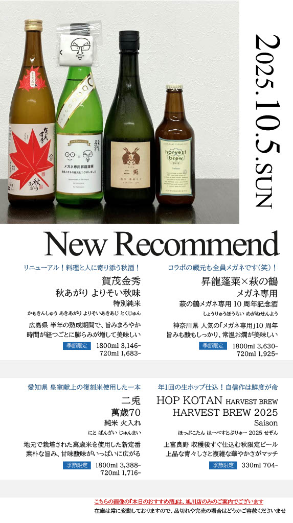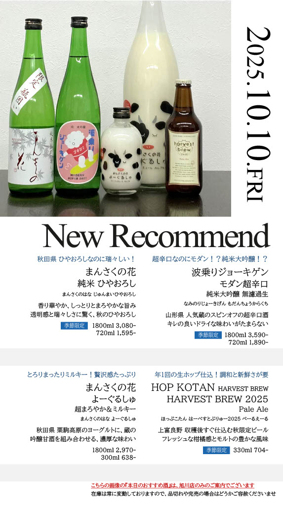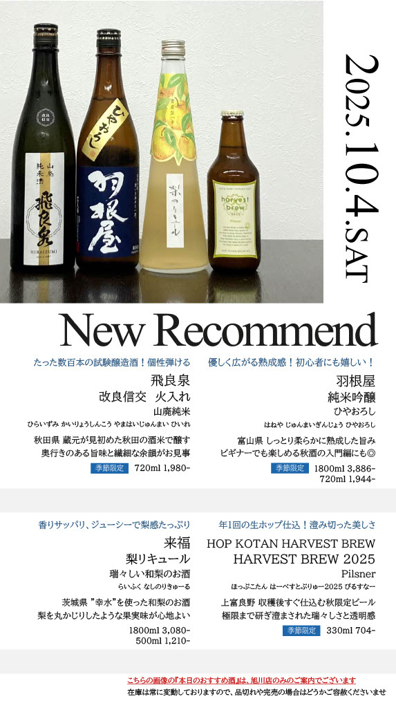 札幌店は狭小店舗のため720mlサイズを中心としたラインナップとなっており、旭川店とは一部取り扱いが異なります。札幌店では「旭川店からの取り寄せ」が可能です。ご希望の商品やサイズがない場合、数日お時間をいただければ、札幌店でのお買い求めも可能となります。気軽にご相談くださいませ。
