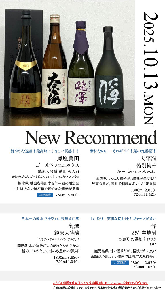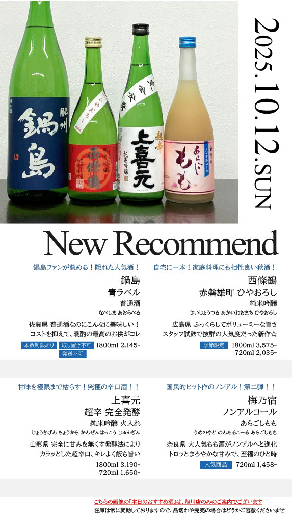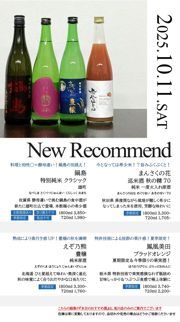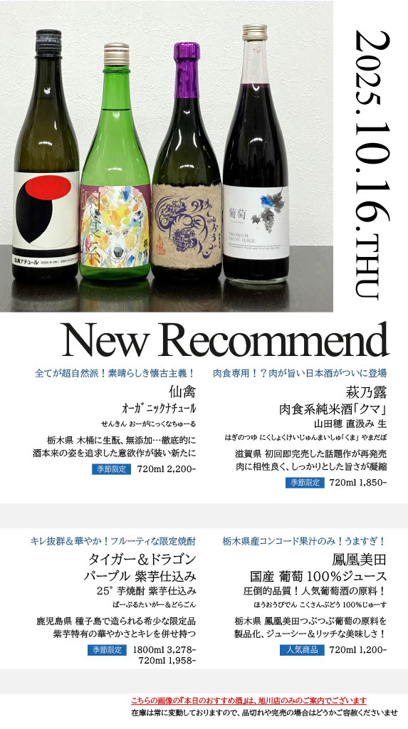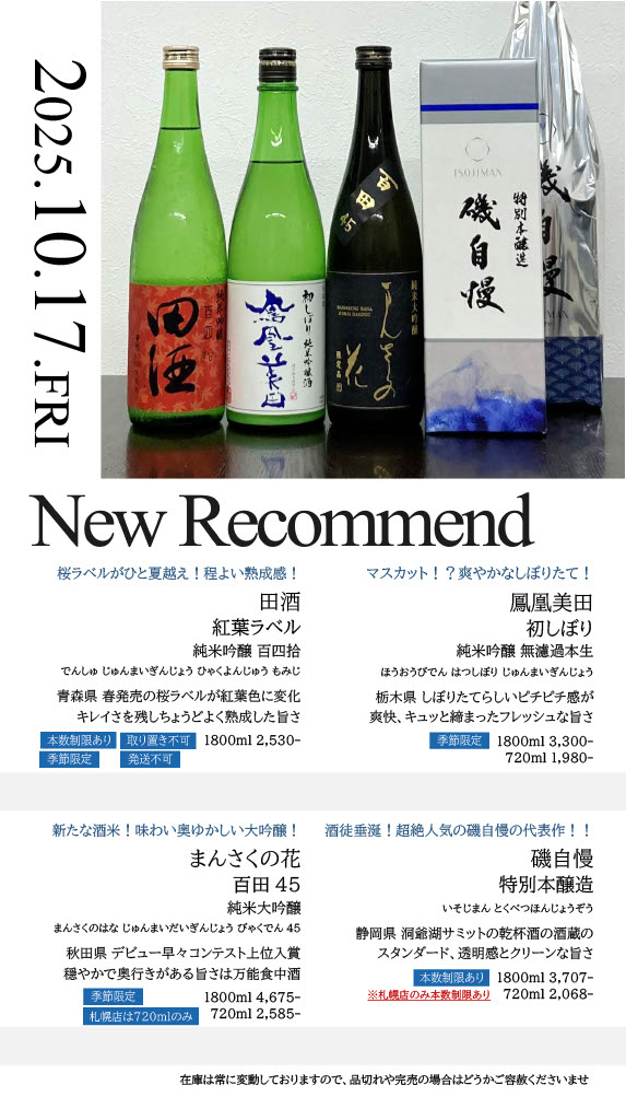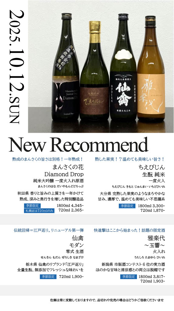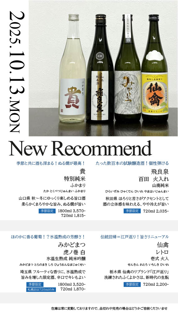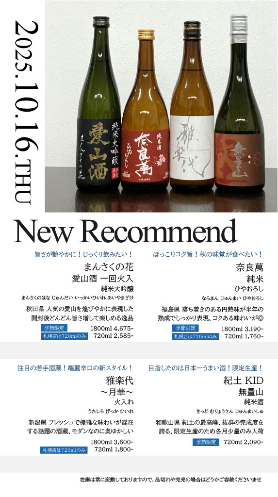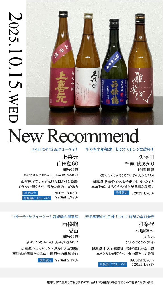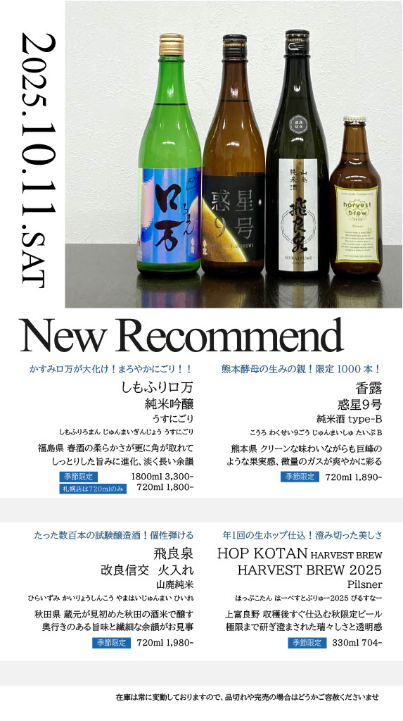 【毎週更新】今週の入荷情報&おすすめ酒~2025年10月第三週~