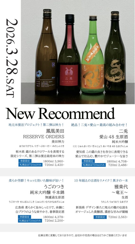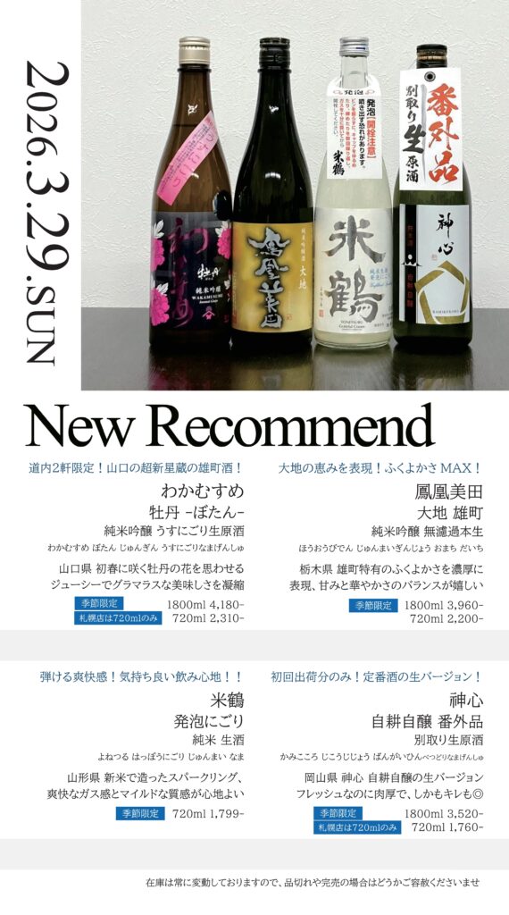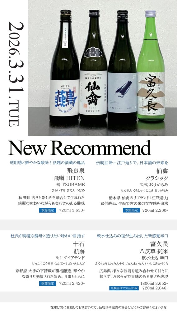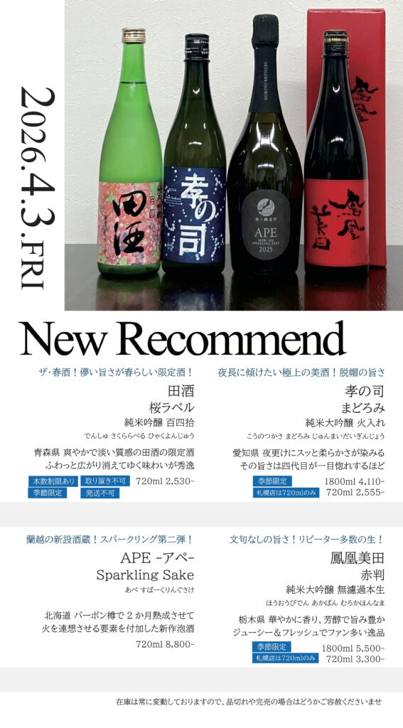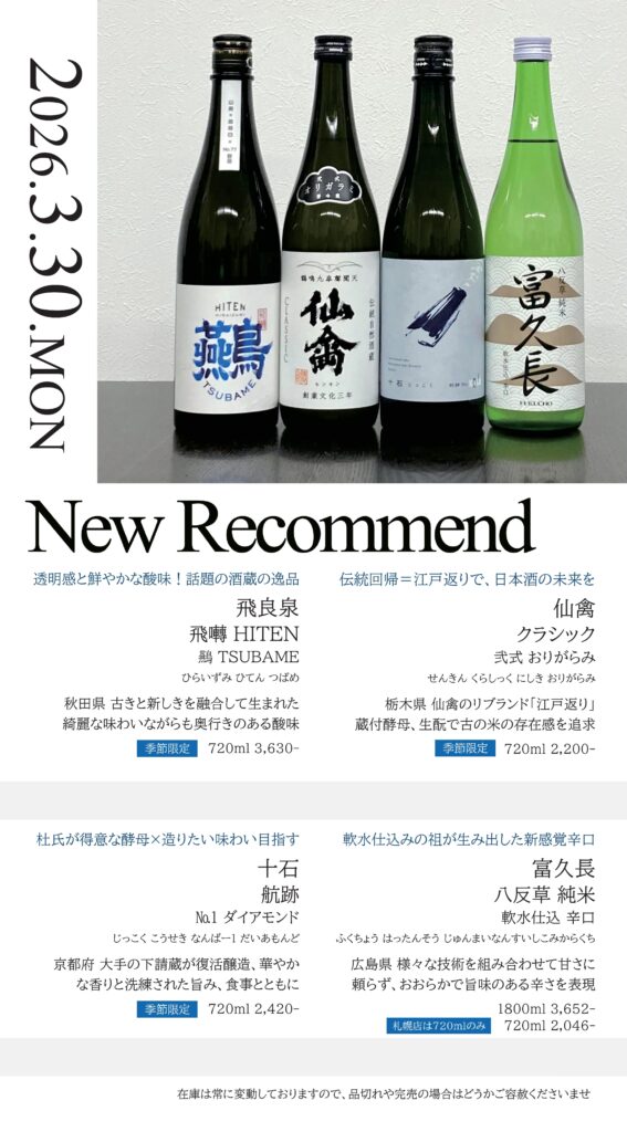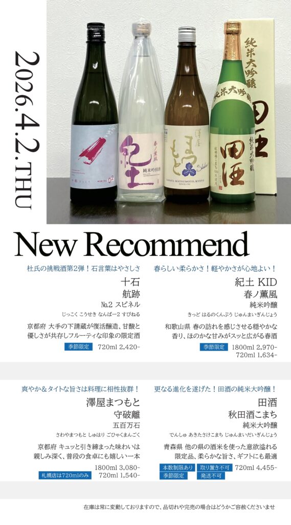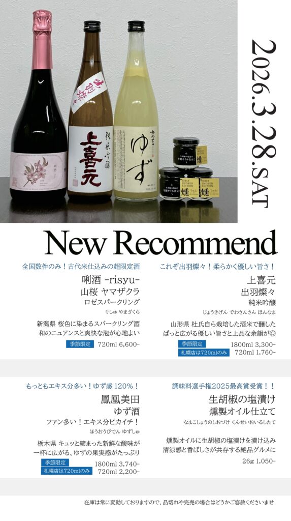 【札幌店】今週の入荷情報・おすすめ酒
