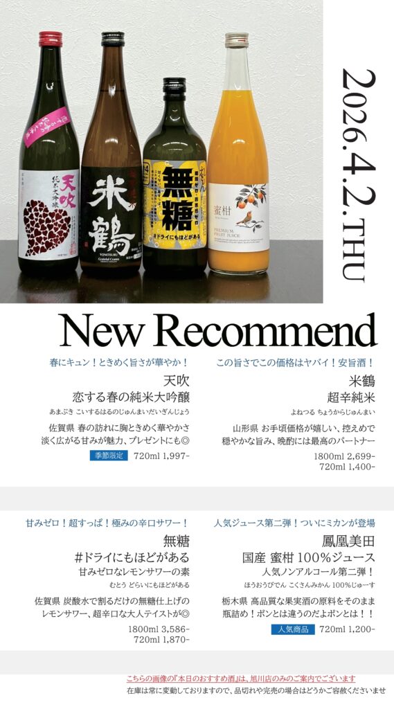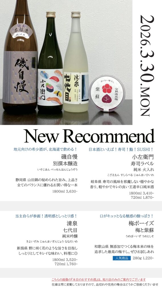 【旭川店】今週の入荷情報・おすすめ酒