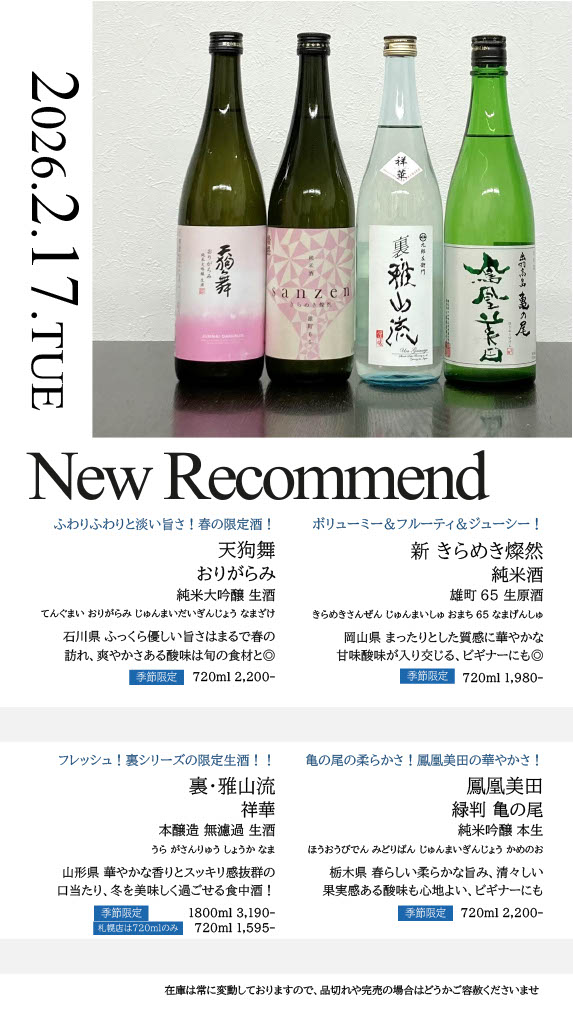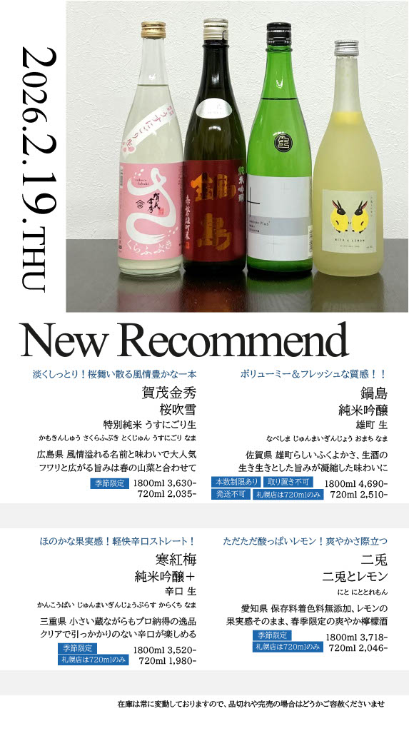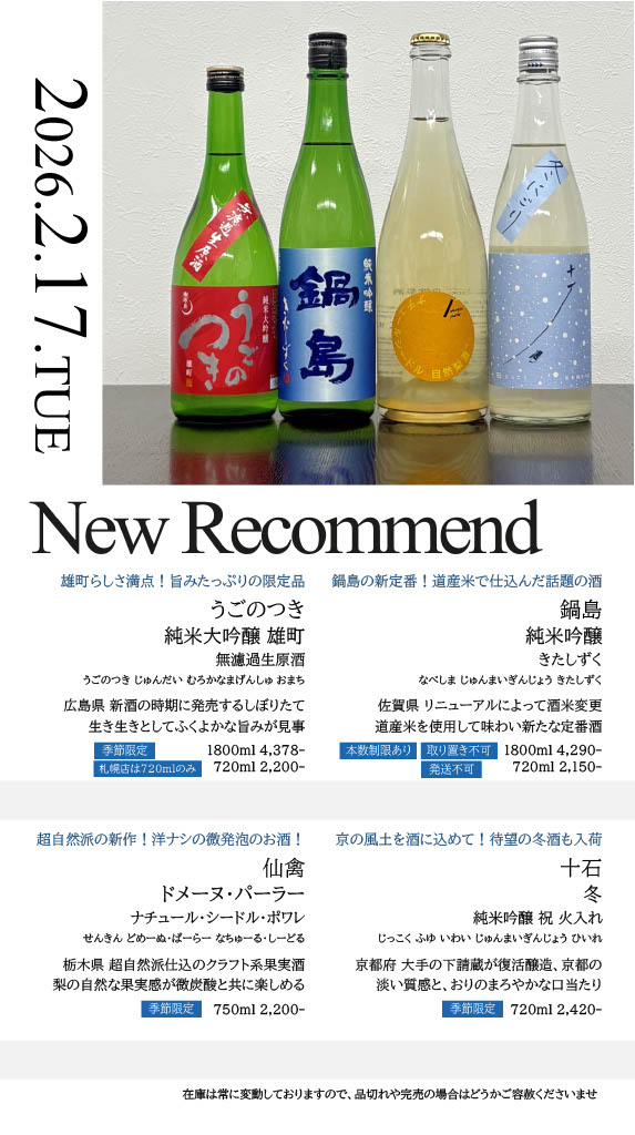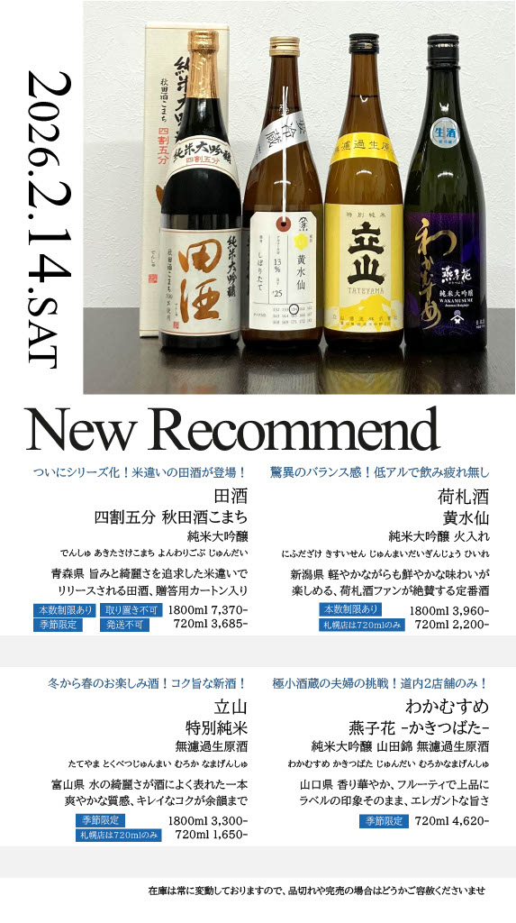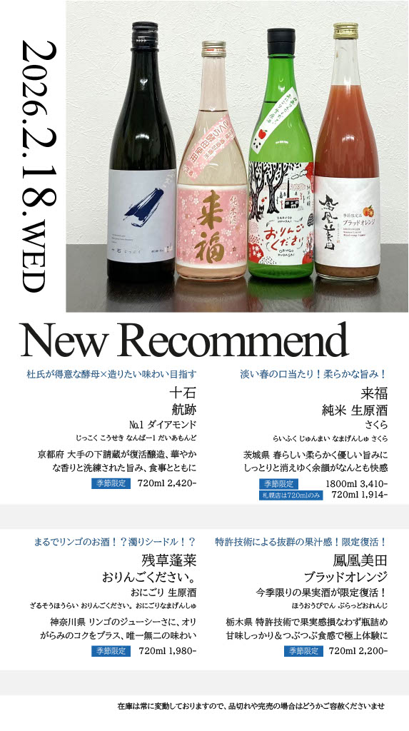 【札幌店】今週の入荷情報・おすすめ酒