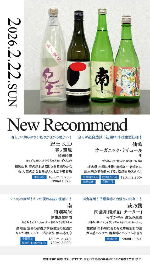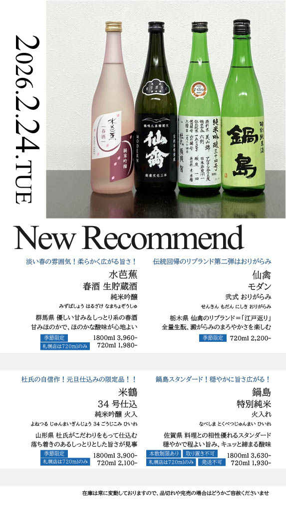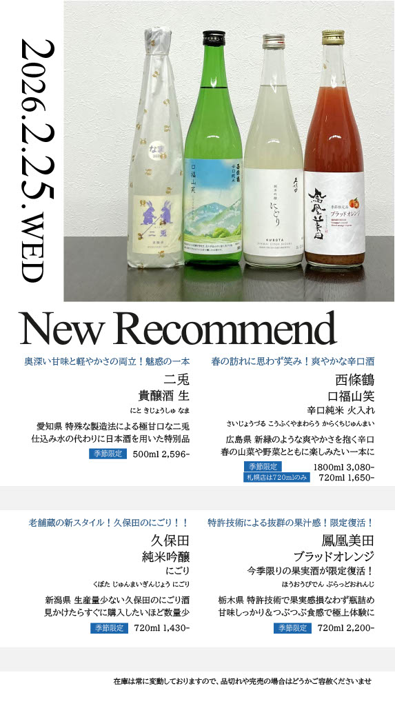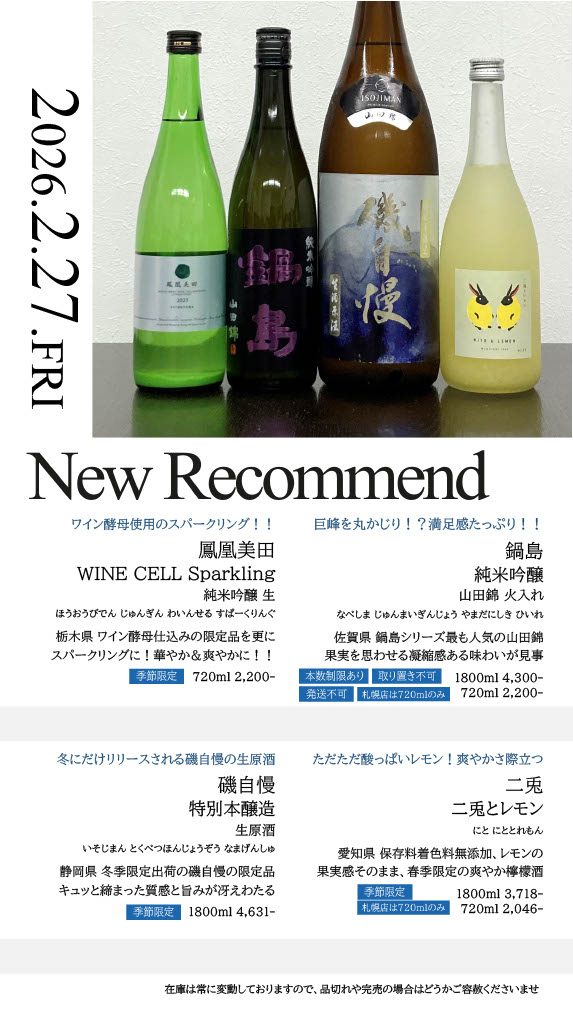 【札幌店】今週の入荷情報・おすすめ酒