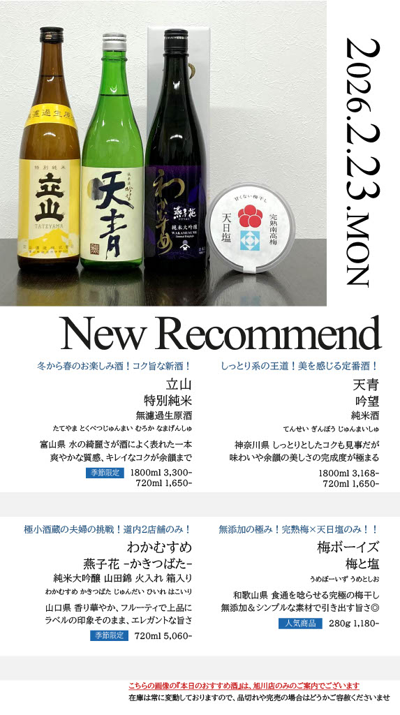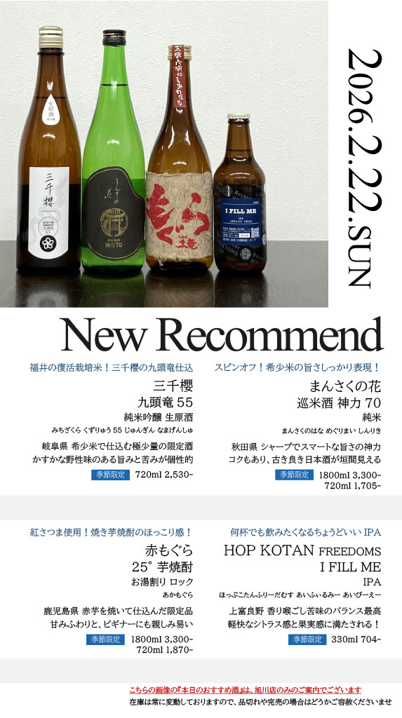【旭川店】今週の入荷情報・おすすめ酒