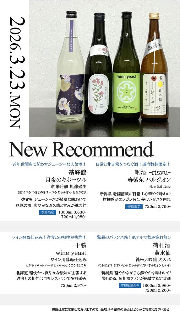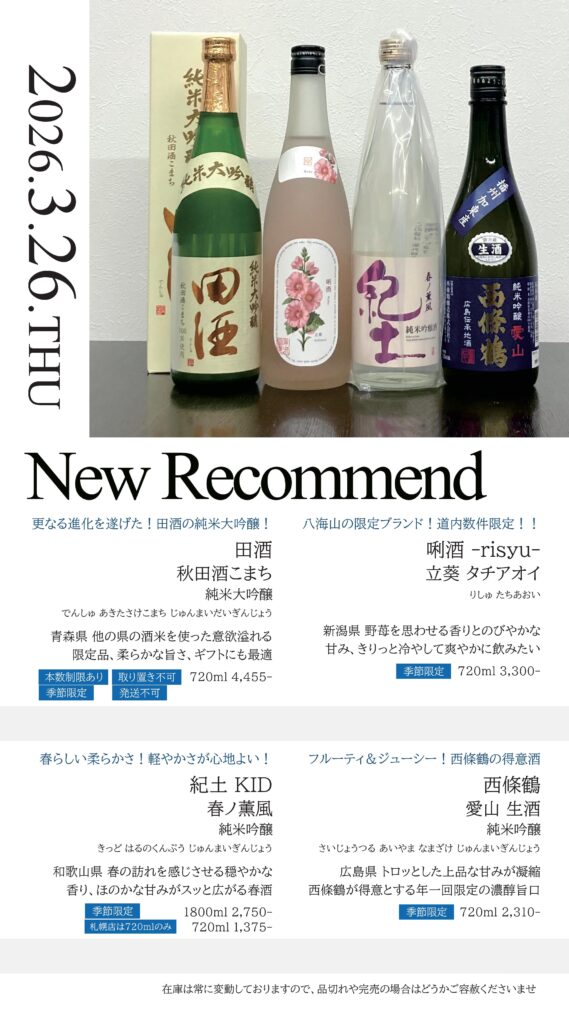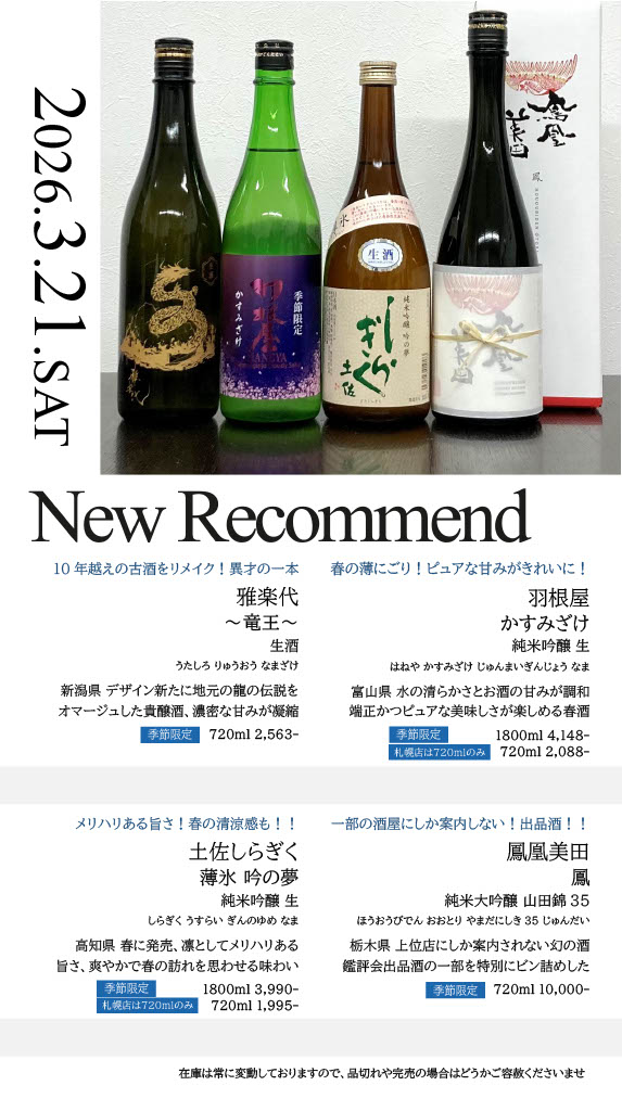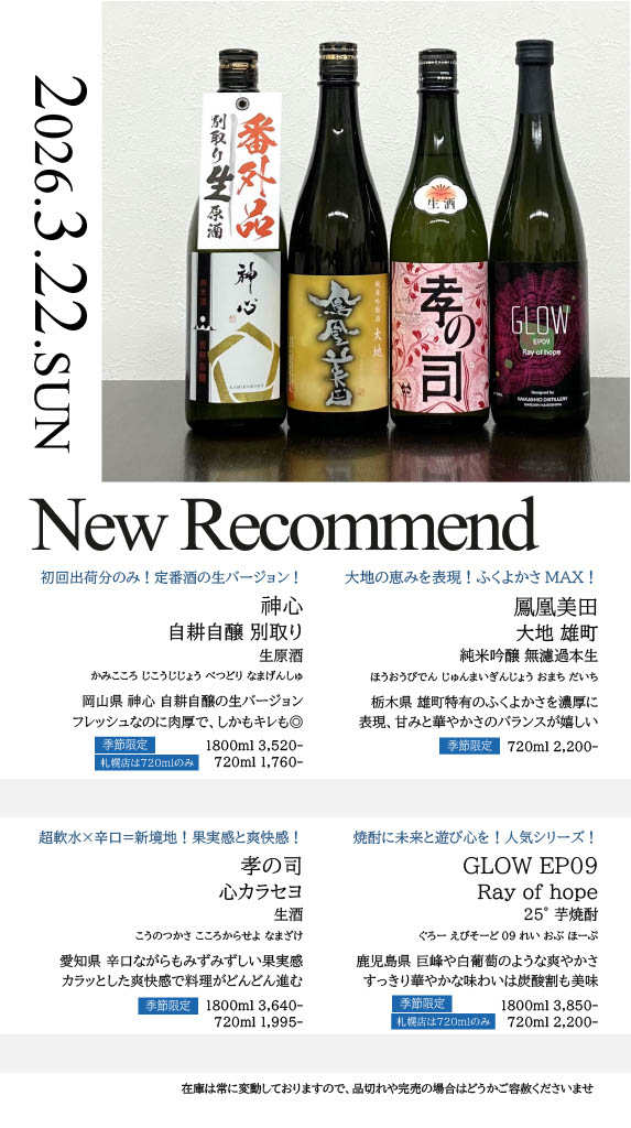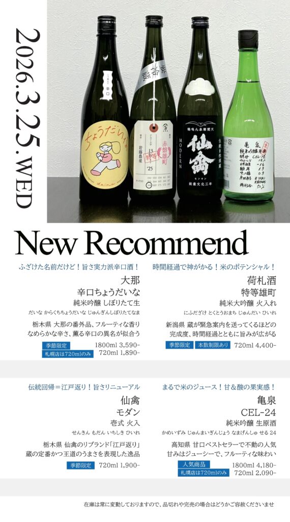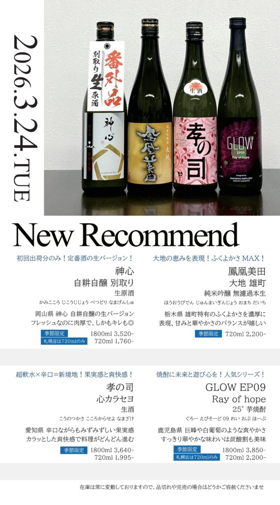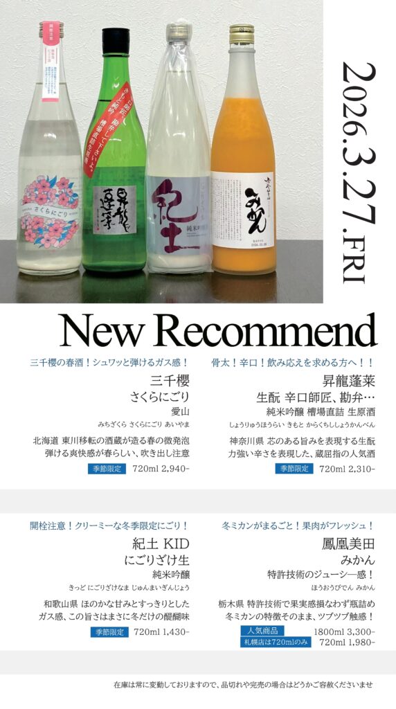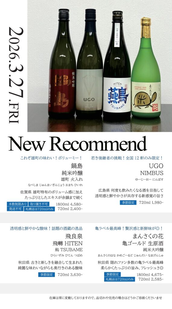 【札幌店】今週の入荷情報・おすすめ酒