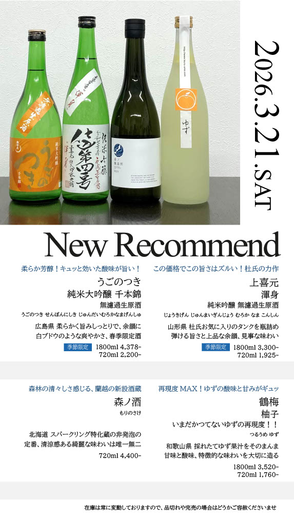 今週の入荷情報・おすすめ酒