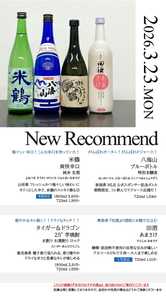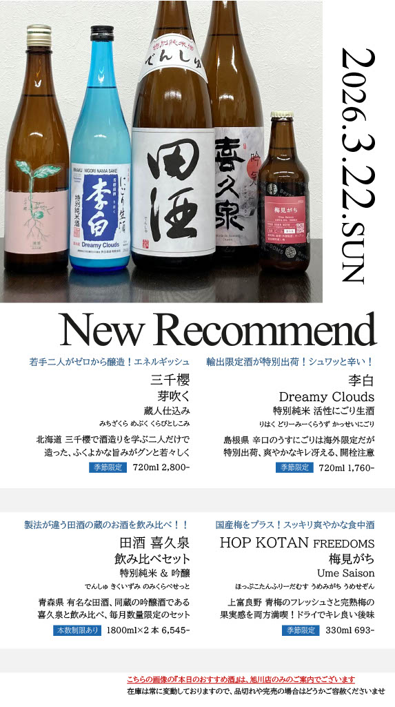 【旭川店】今週の入荷情報・おすすめ酒